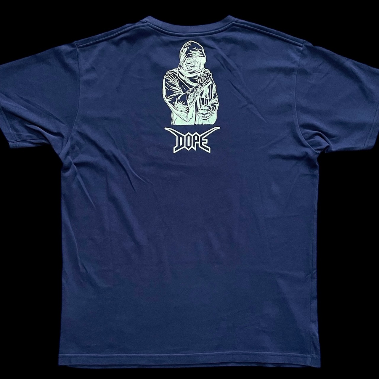 古着Tシャツに手製のスクリーンプリント カラー:ブラック ボディ:ユニクロ サイズ:L 着丈:68cm 身幅:51cm